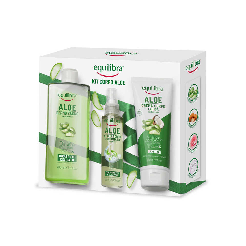 Equilibra Body, Kit Corporal de Aloe, Dermo-Baño Hidratante de Aloe, Agua Corporal con Aroma a Aloe, Crema Corporal Fluida Calmante de Aloe