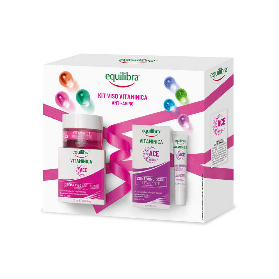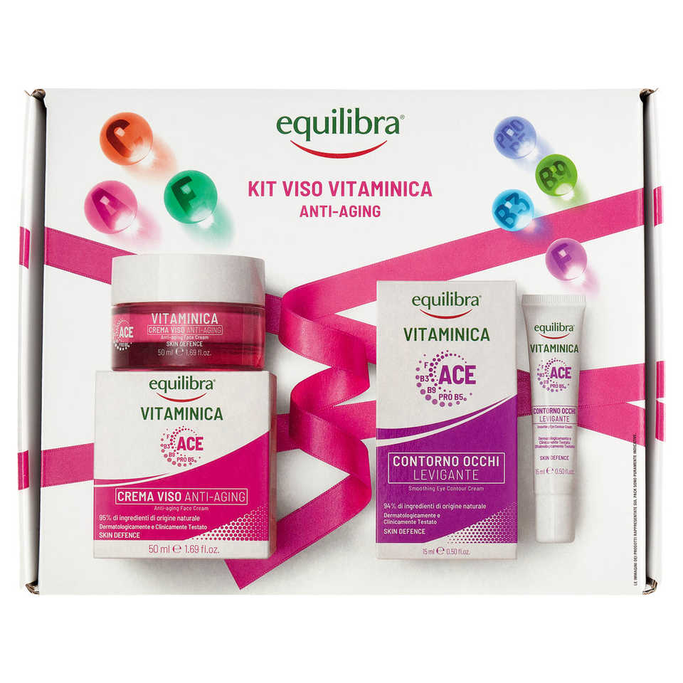 Equilibra Face, Kit Facial Antienvejecimiento con Vitaminas, Crema Facial Antienvejecimiento, Contra los Signos del Envejecimiento y Suavizante del Contorno de Ojos