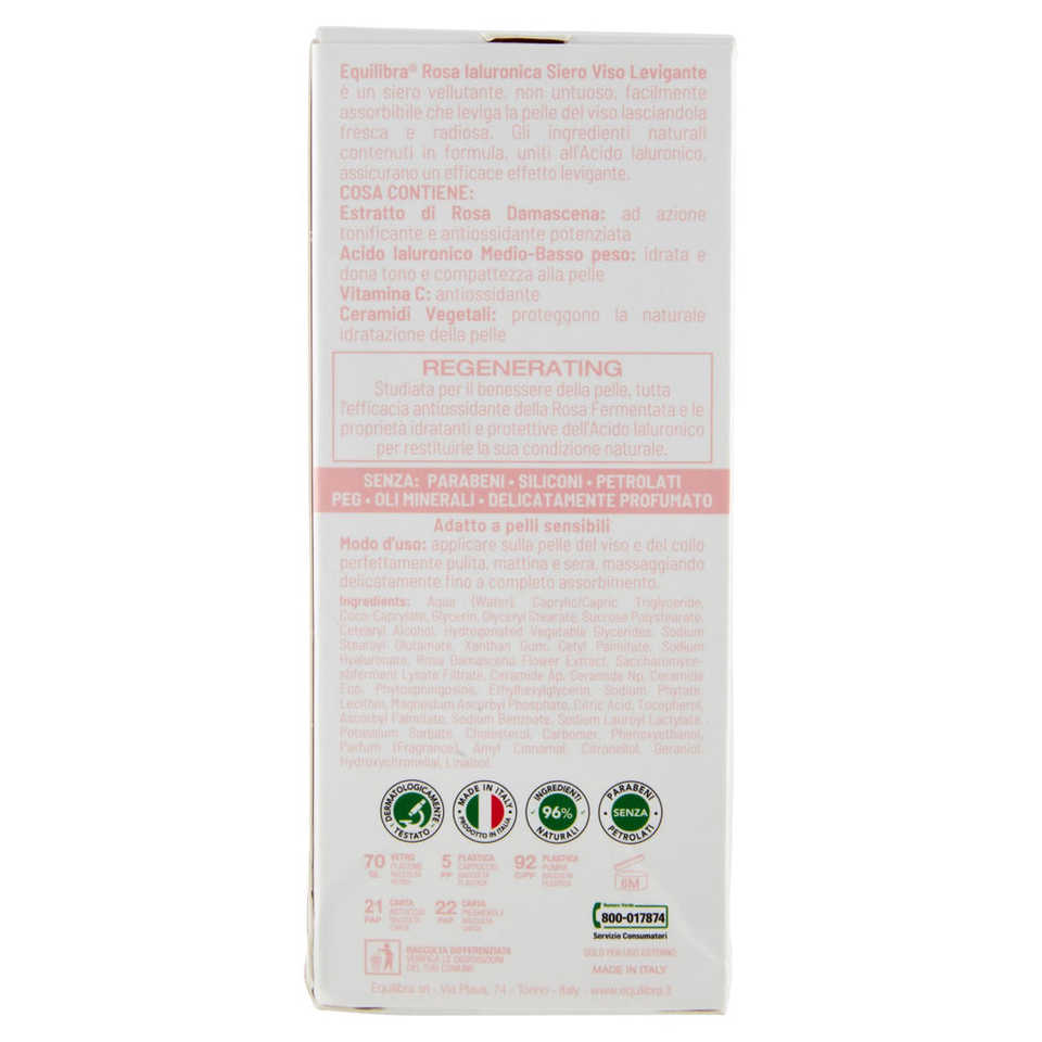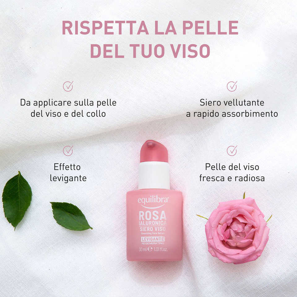 Equilibra Face, Sérum Facial Suavizante y Aterciopelado con Ácido Hialurónico y Rosa de Damasco, a Base de Extracto de Rosa de Damasco