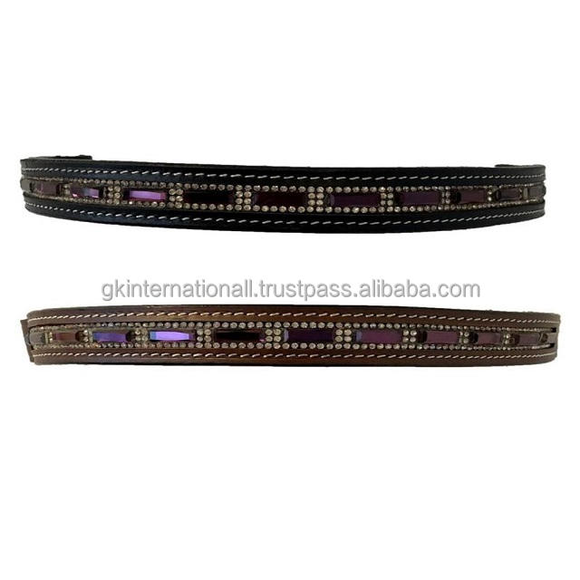 Bandas rectangulares de cejas de caballo brillantes de cristal multicolor equino hechas en cuero inglés negro y marrón en mazorca completa