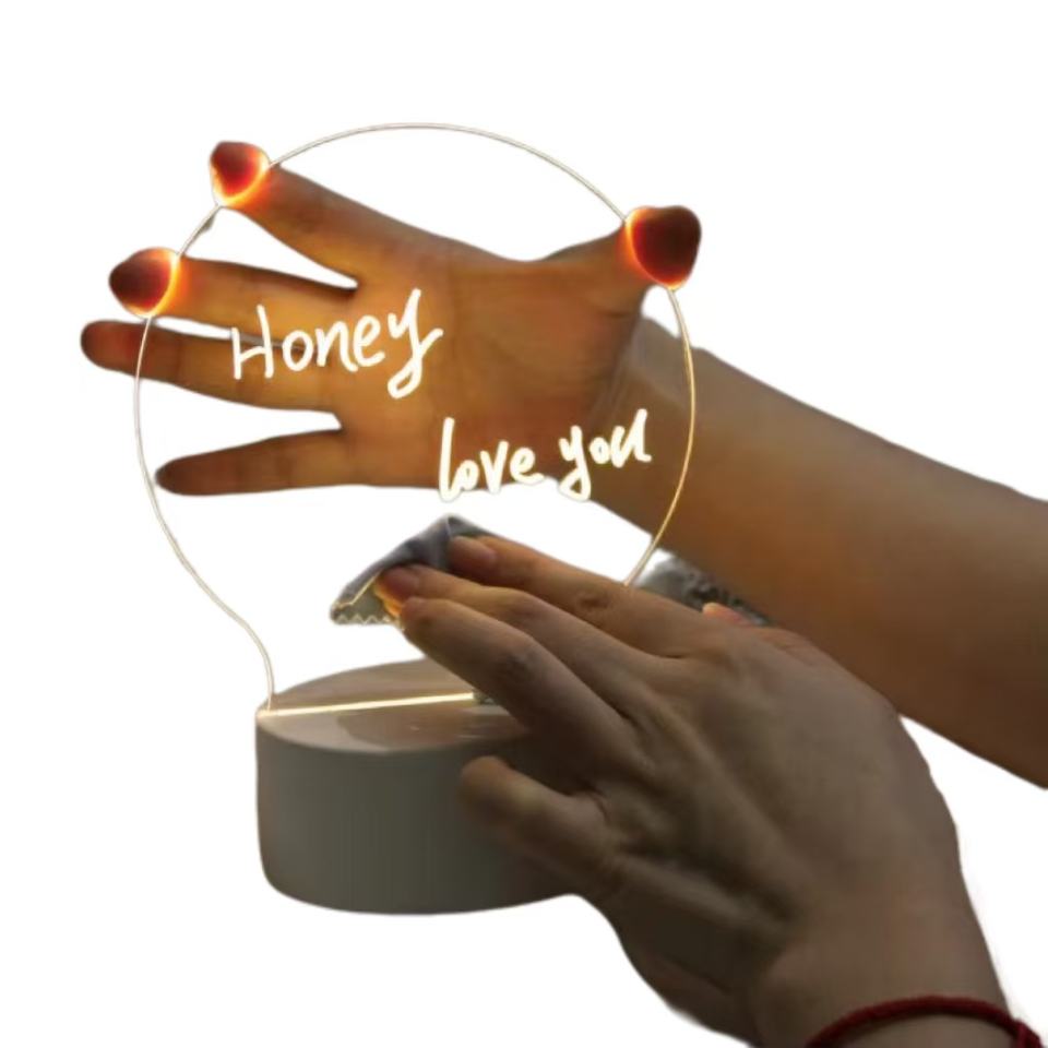 Tablero de mensajes Led de acrílico 3D con Base blanca borrable, luz nocturna, Ideas creativas para regalos de cumpleaños, almohadilla de escritura acrílica luminosa