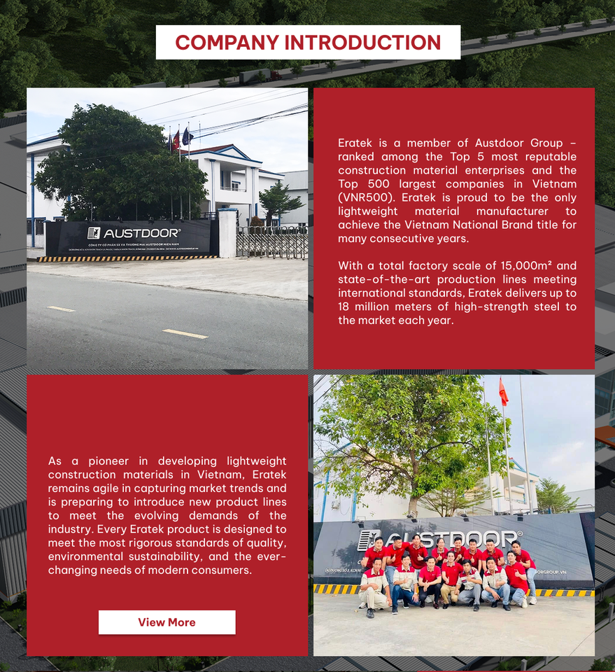 Eratek EC75.75 G550 Grado JIS Estándar Recubrimiento Duracoat Estructura de Techo Ligera para Viviendas Tolerancia del 5% para Gallineros y Porquerizas Residenciales