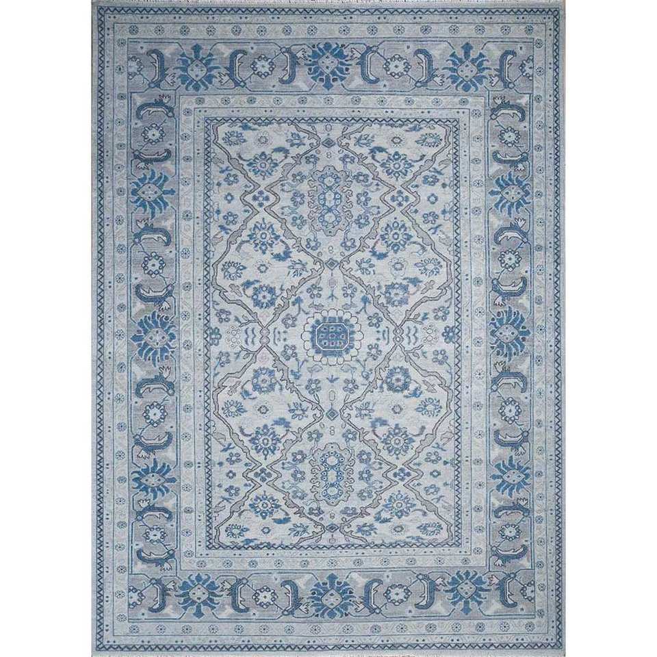 Alfombra de Lana Anudada a Mano Erbe Azul, Rectangular de 9x12, con Patrón de Medallón, para Decoración de Sala de Estar Juvenil