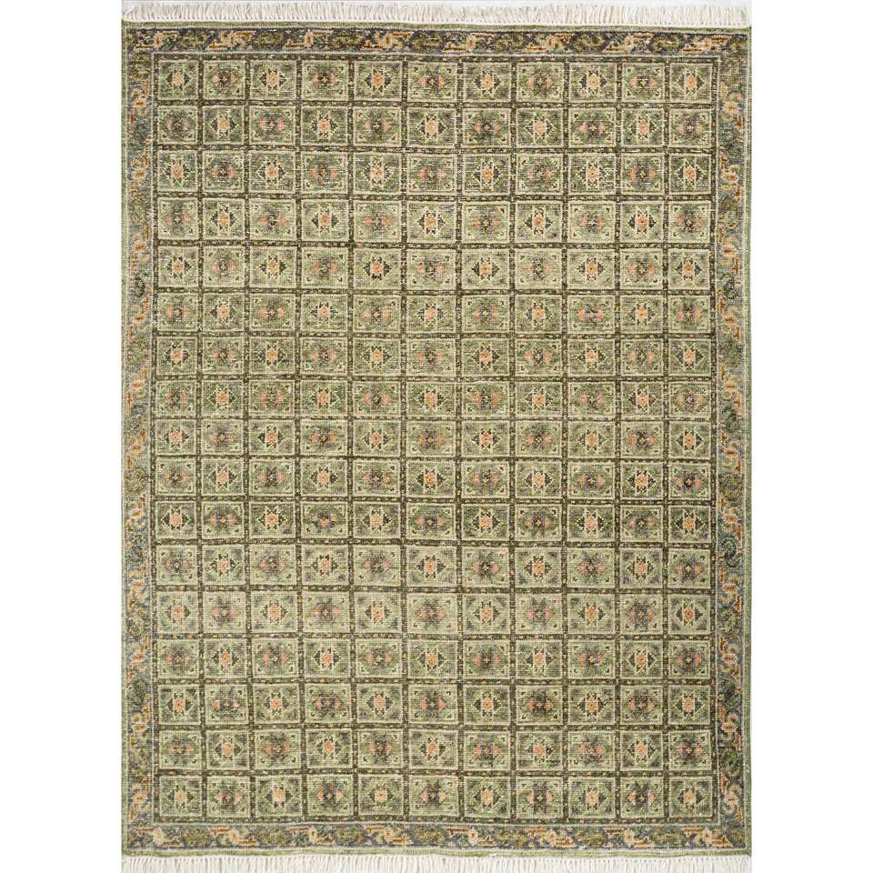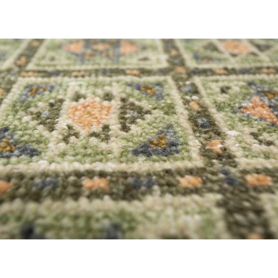 Alfombra de Lana Anudada a Mano Erbe Green con Patrón Geométrico para Sala de Estar, Pasillo, Modelo GS-1515, Hecha a Mano para Adolescentes