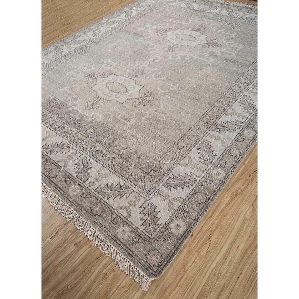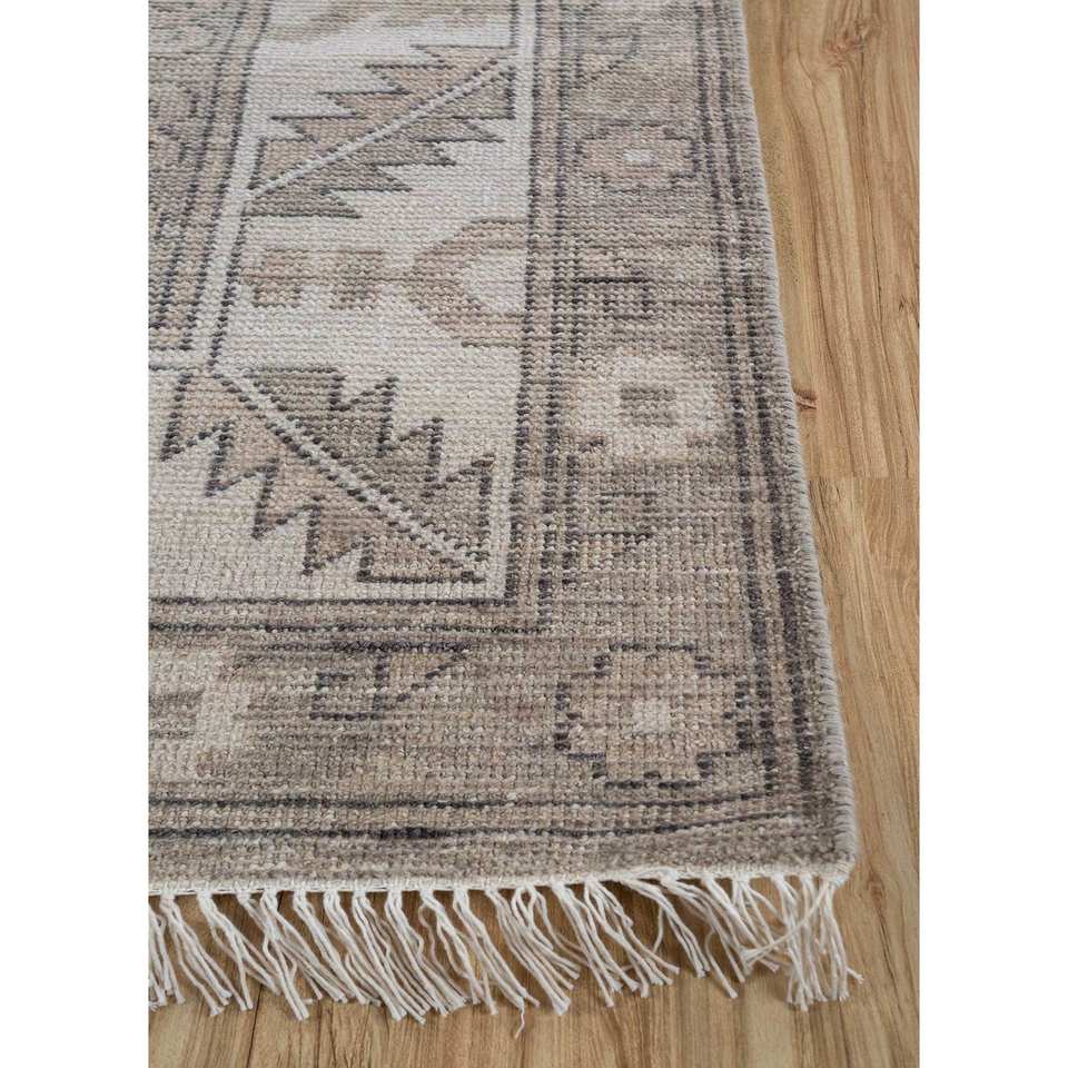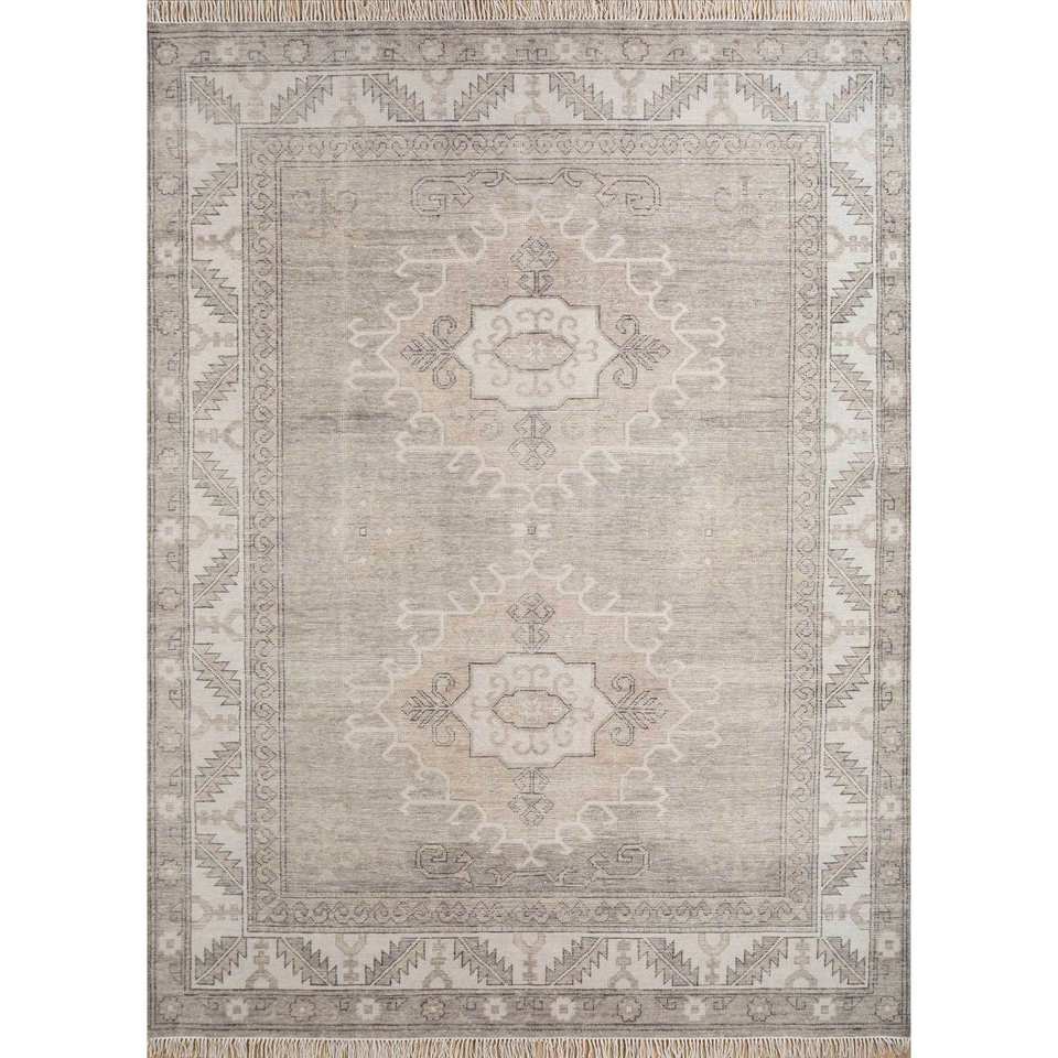 Alfombra de Lana Anudada a Mano Erbe AKWL-1276, Rectangular, con Diseño de Medallón Gris y Negro, para Sala de Estar, Pasillo, 9x12