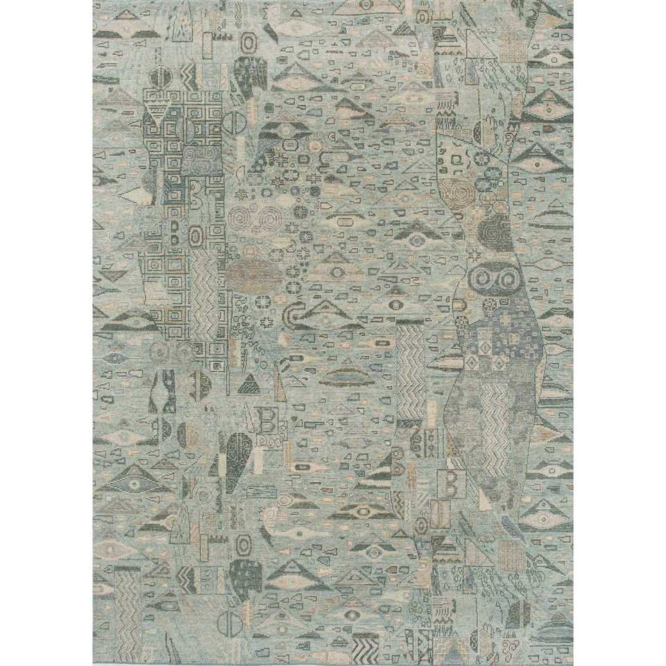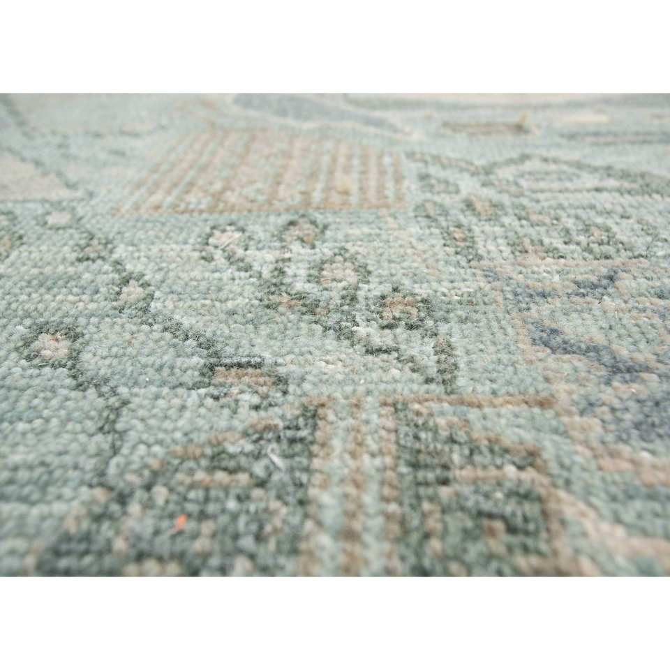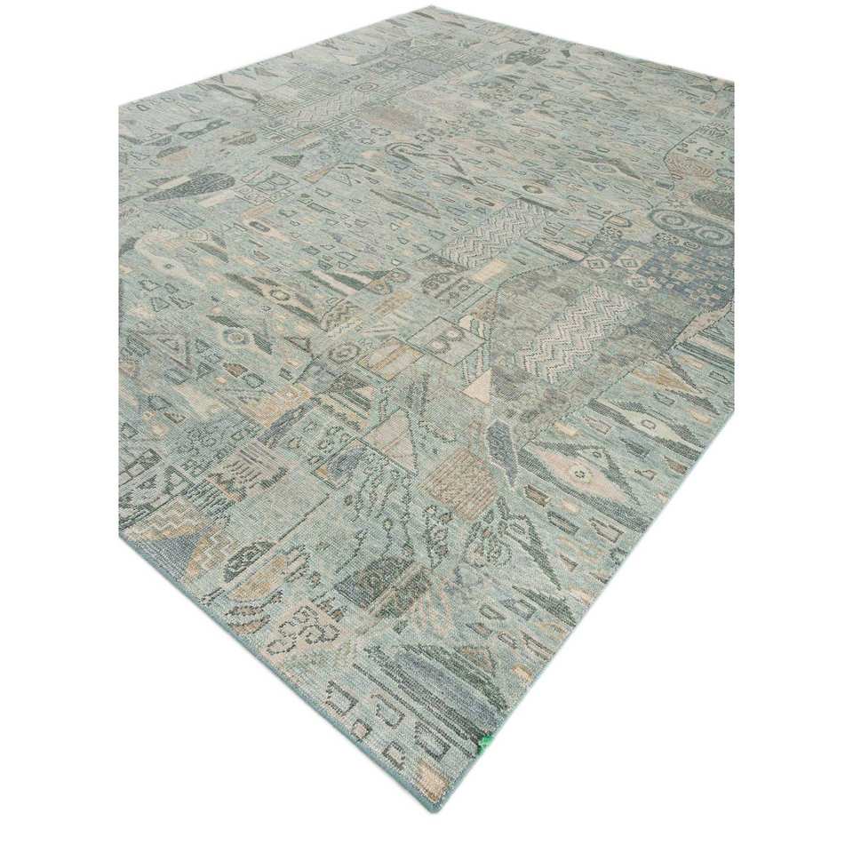 Alfombra de Lana Anudada a Mano Erbe, Azul Gs-1534, Patrón de Diamantes Abstracto, Alfombra Rectangular Hecha a Mano para Pasillo, Sala de Estar