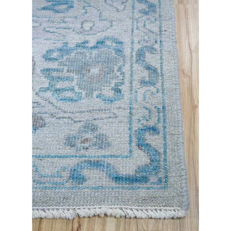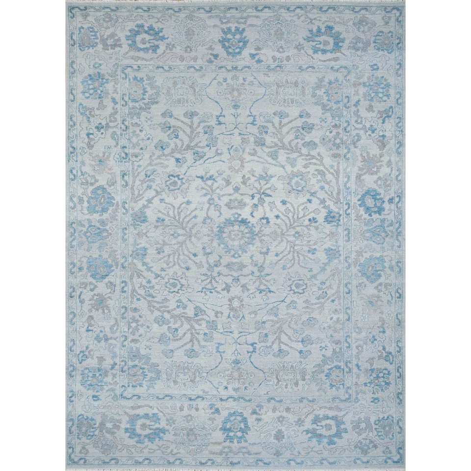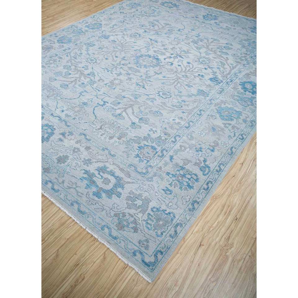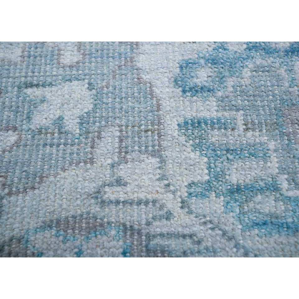 Alfombras de Lana Anudadas a Mano Erbe, Diseño Floral y Abstracto Azul, para Entrada, Dormitorio, Pasillo, Tamaño Rectangular 9x12, Modelo Enlp-07