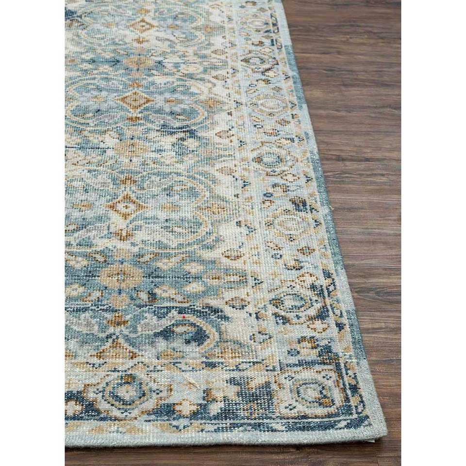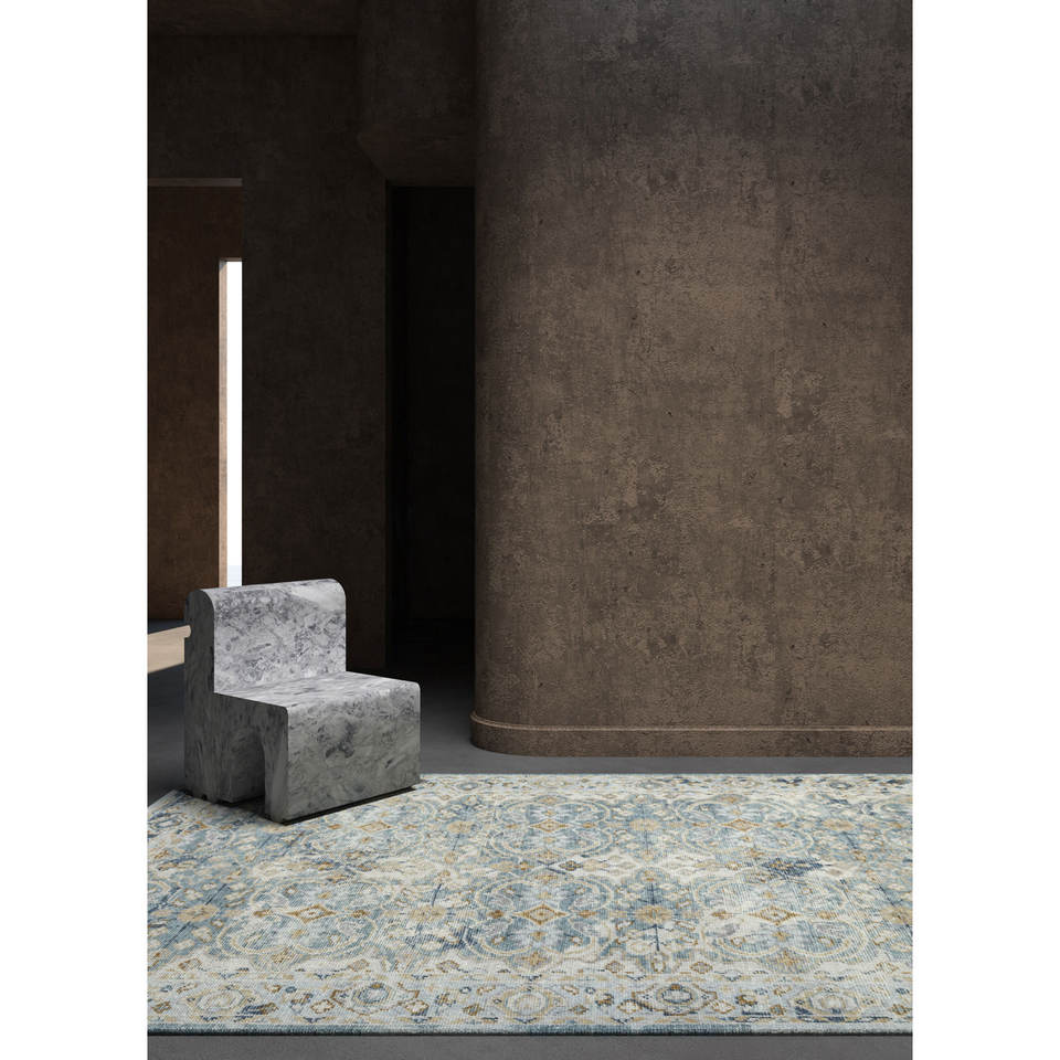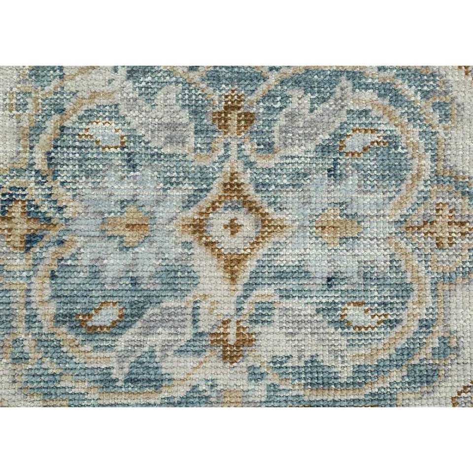 Alfombra de Lana Anudada a Mano Erbe, Azul PKWL-8012, 9x12, Rectangular, con Medallón Abstracto, para Entrada, Pasillo o Sala de Estar, Hecha a Mano