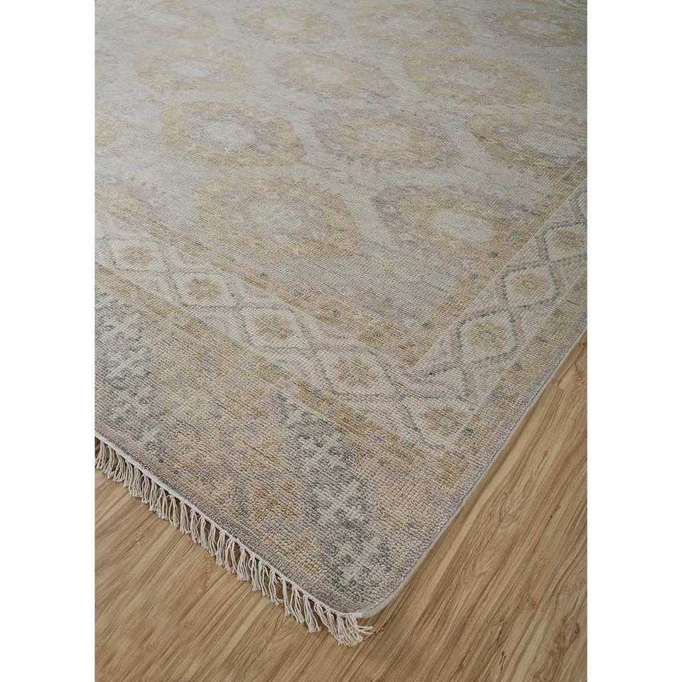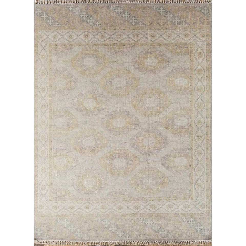 Alfombra de Lana Anudada a Mano Erbe PKWL-960, Tono Dorado, Versátil, Rectangular 9x12, Diseño de Medallón Abstracto, para Pasillo, Entrada, Hogar