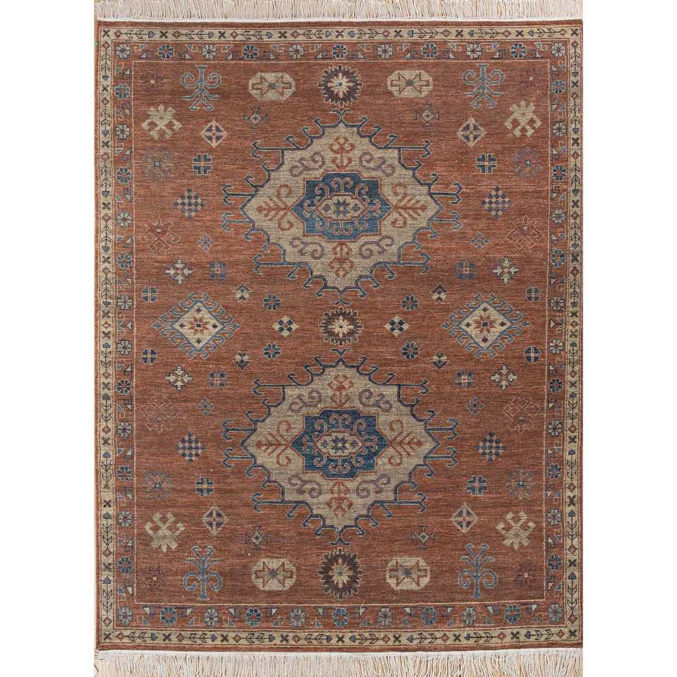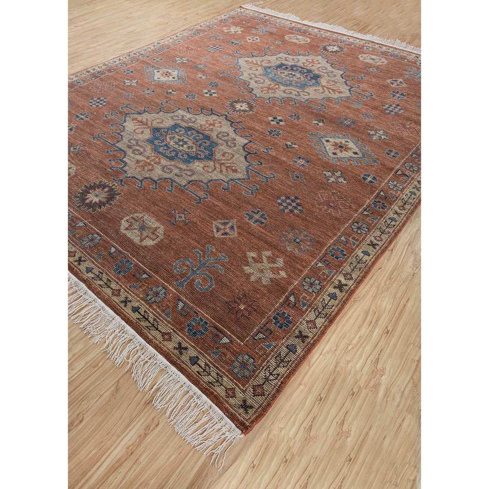 Alfombra de Lana Anudada a Mano Erbe, Diseño Abstracto con Medallón Rojo Naranja, Rectangular, para el Hogar, AKWL-1277, Alfombra de Salón 9x12 para Entrada o Pasillo