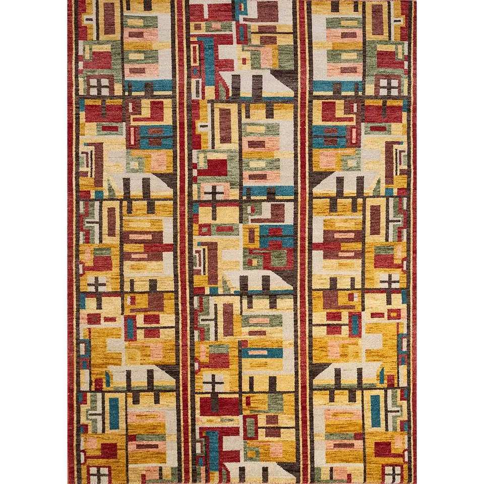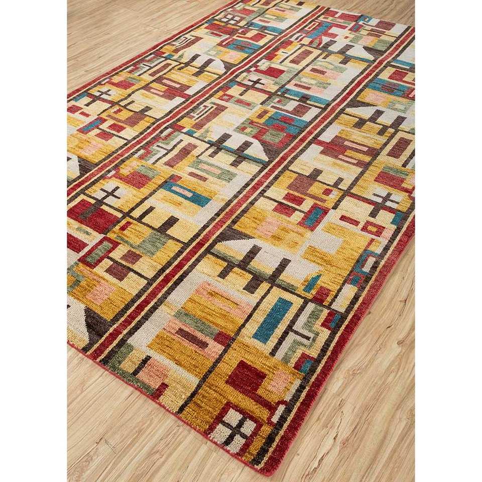 Alfombras de Lana Anudadas a Mano Erbe, Diseño Geométrico Abstracto Rojo y Naranja para Sala de Estar, Dormitorio, Pasillo, Rectangular 9x12, Lca-827