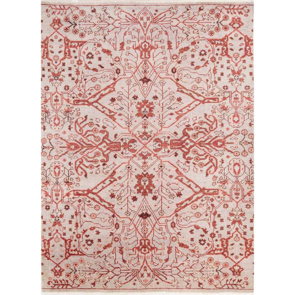 Alfombra de Lana Anudada a Mano Erbe, Diseño Abstracto con Medallón Rojo Naranja, Rectangular, para el Hogar, Entrada o Pasillo, 9x12