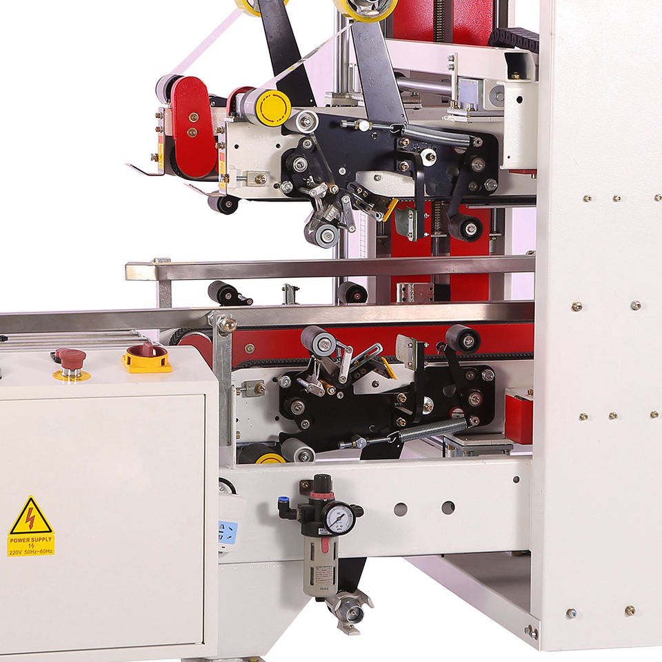 Erector y Mini máquina de sellado de bordes de cartón ángulos cinta en forma de H con transportador de rodillos de primera clase