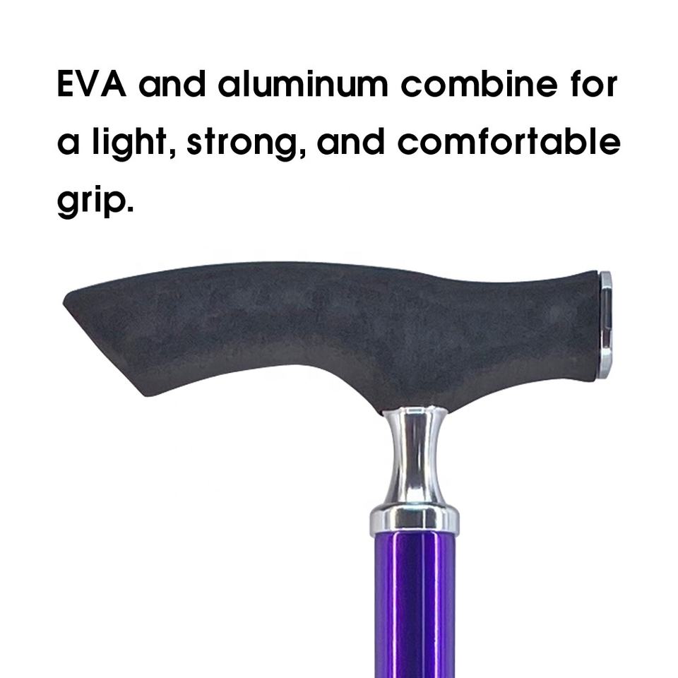 Bastón ergonómico morado con empuñadura de EVA y base antideslizante, ayuda para la movilidad de cuidadores de ancianos