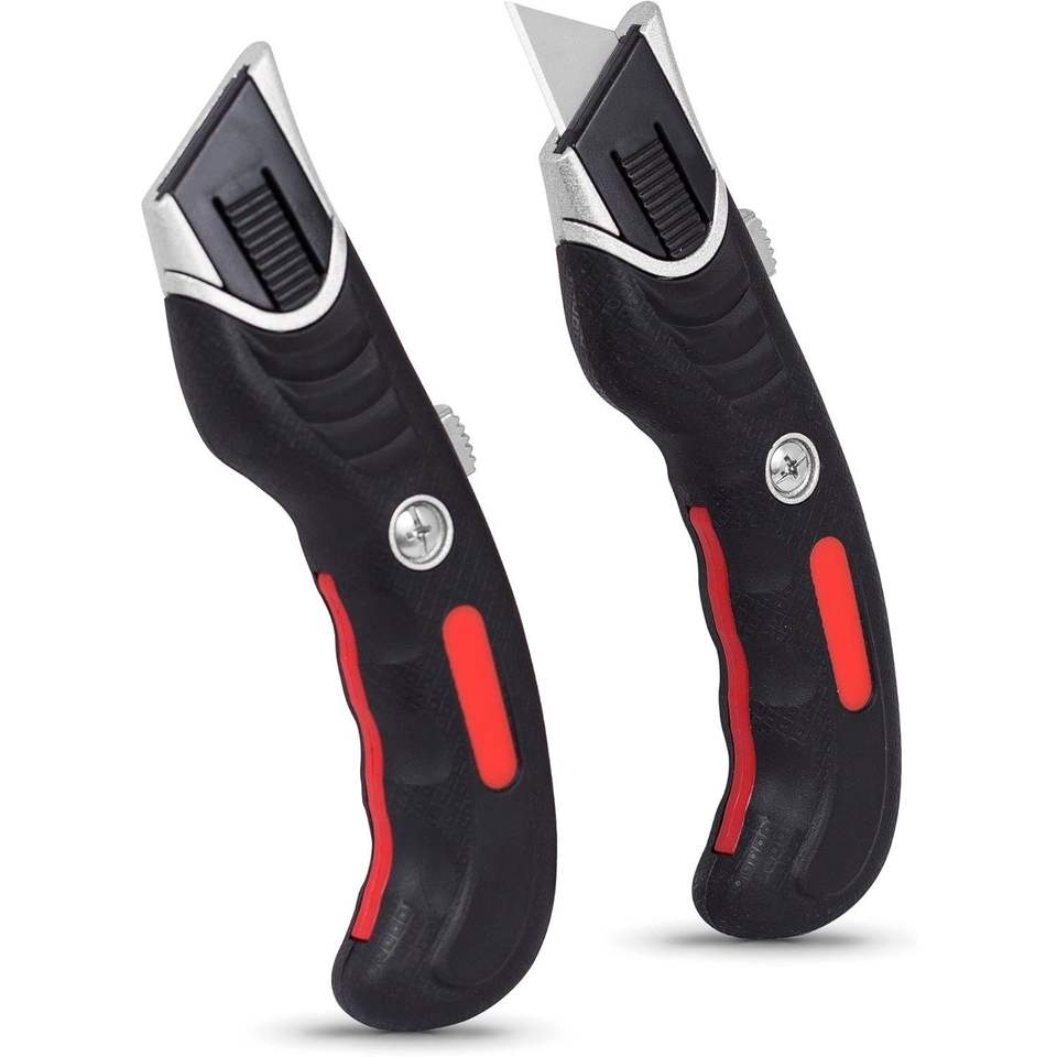 Juego de Cuchillos Ergonómicos con Cortador Retráctil, Mango de Goma para Cortar Cartón, Alfombras y Plástico