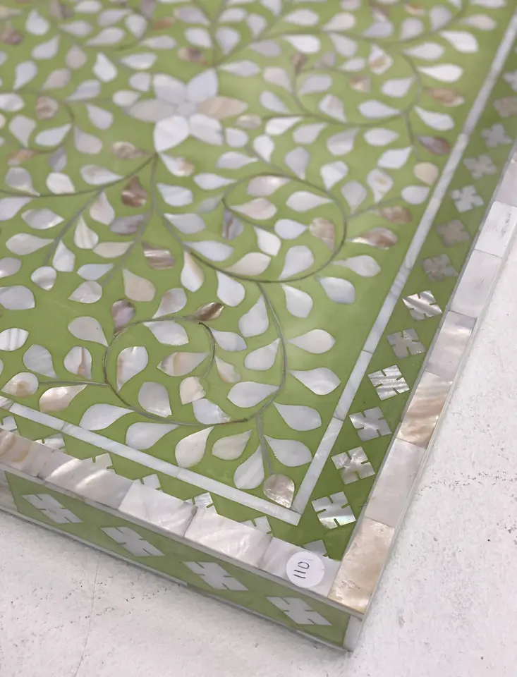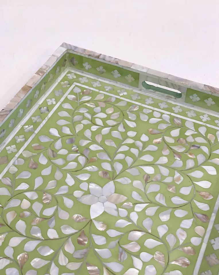 Bandeja con incrustaciones rectangulares de perlas para el hogar, bandeja hecha a mano para servir comida, lo mejor para celebración de Eid de Ramadán