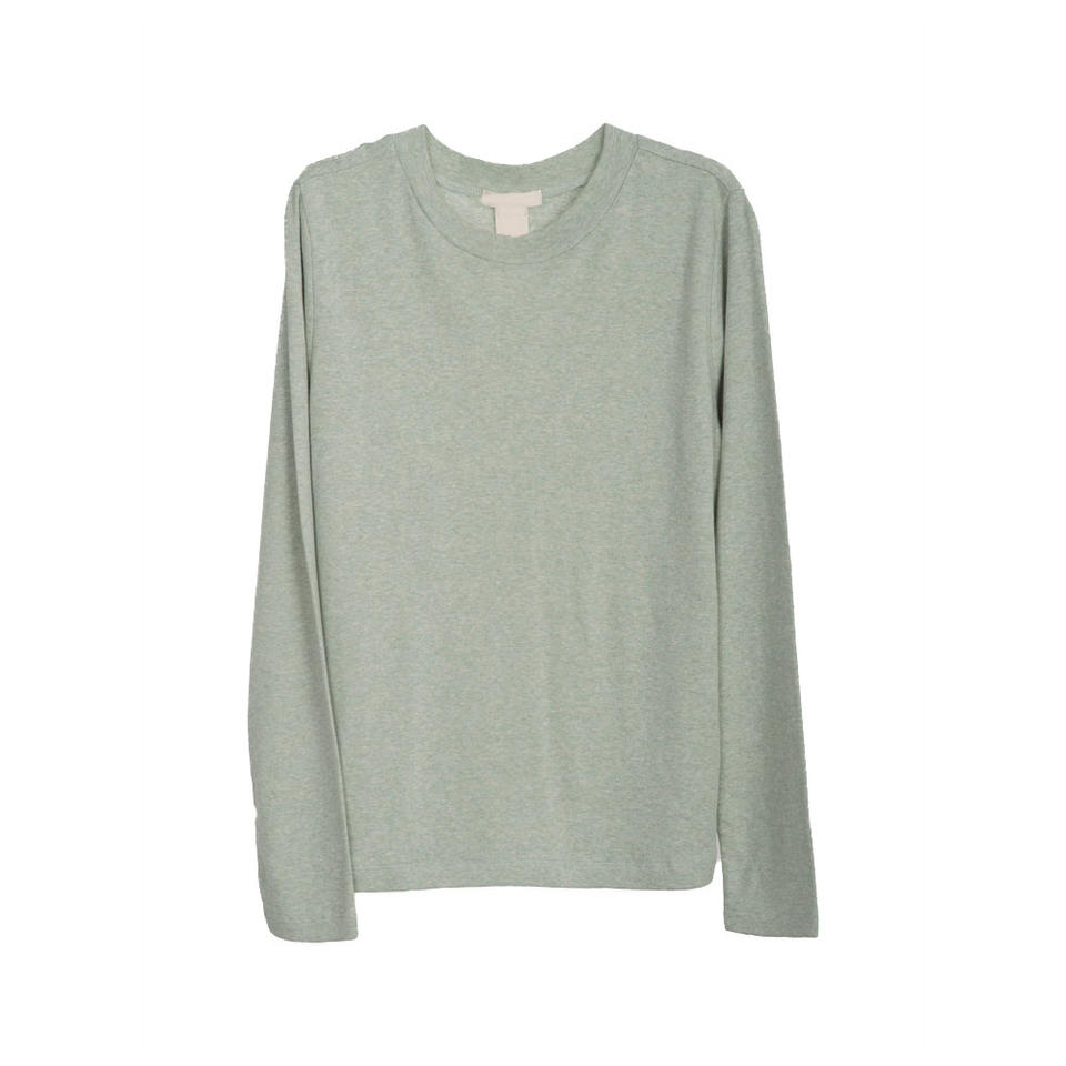 Camiseta de punto bordada versátil Essential Loop, de algodón de peso medio, lisa, de manga larga, para hombre, capa base, ecológica