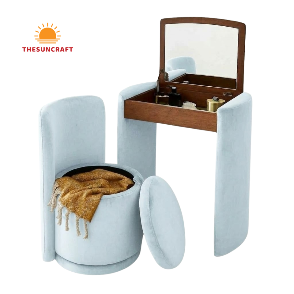 Conjunto de tocador esquinero moderno esencial - Mesa de maquillaje de madera de roble para niñas con espejo y silla - Suministro económico
