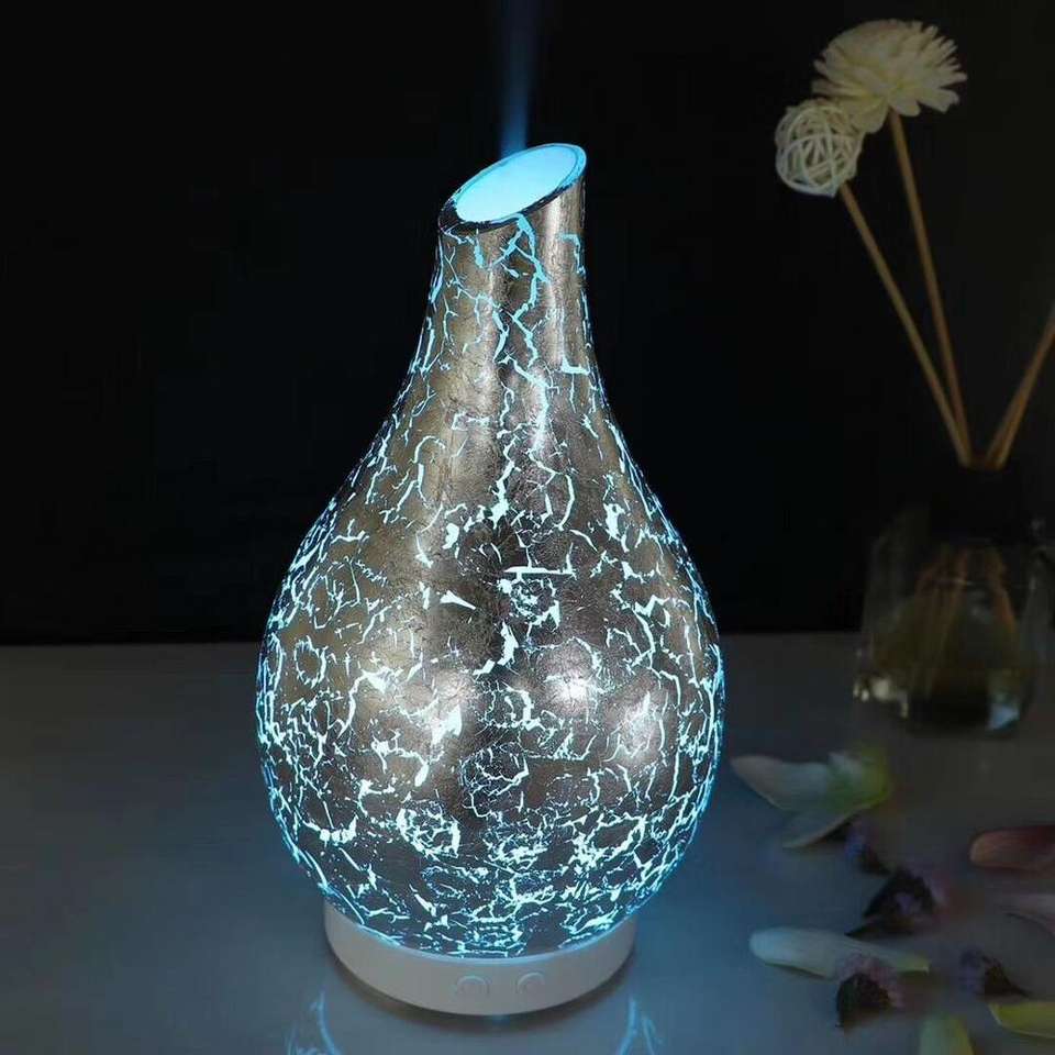 Difusor de aceite esencial para aromaterapia, aceites terapéuticos, cubierta de jarrón de vidrio 3D ultrasónico y pantalla de luz LED