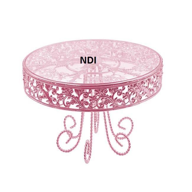 Base para Pastel con Diseño Grabado, Forma Redonda, Recubrimiento en Polvo Rosa, Acabado Brillante, Disponible a Precio de Mayoreo
