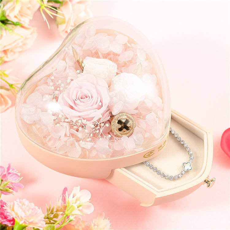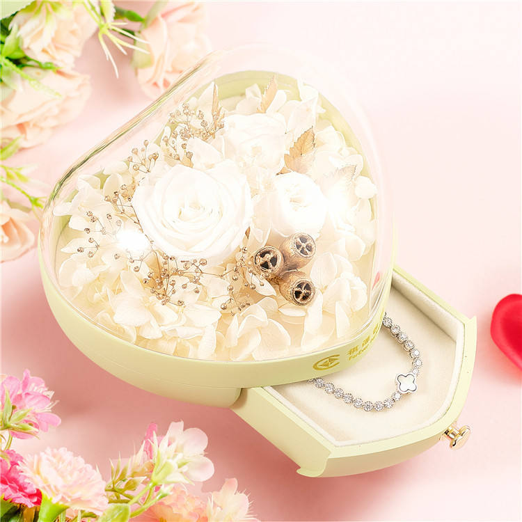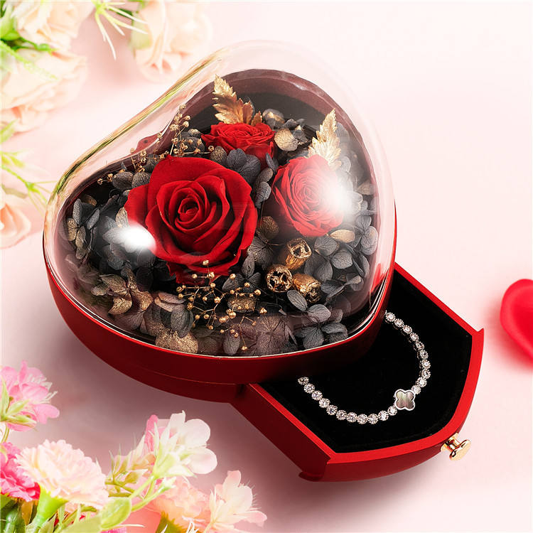 Caja de regalo de flor de vida eterna, caja de joyería de amor decorativa, regalo de San Valentín, flor en forma de corazón