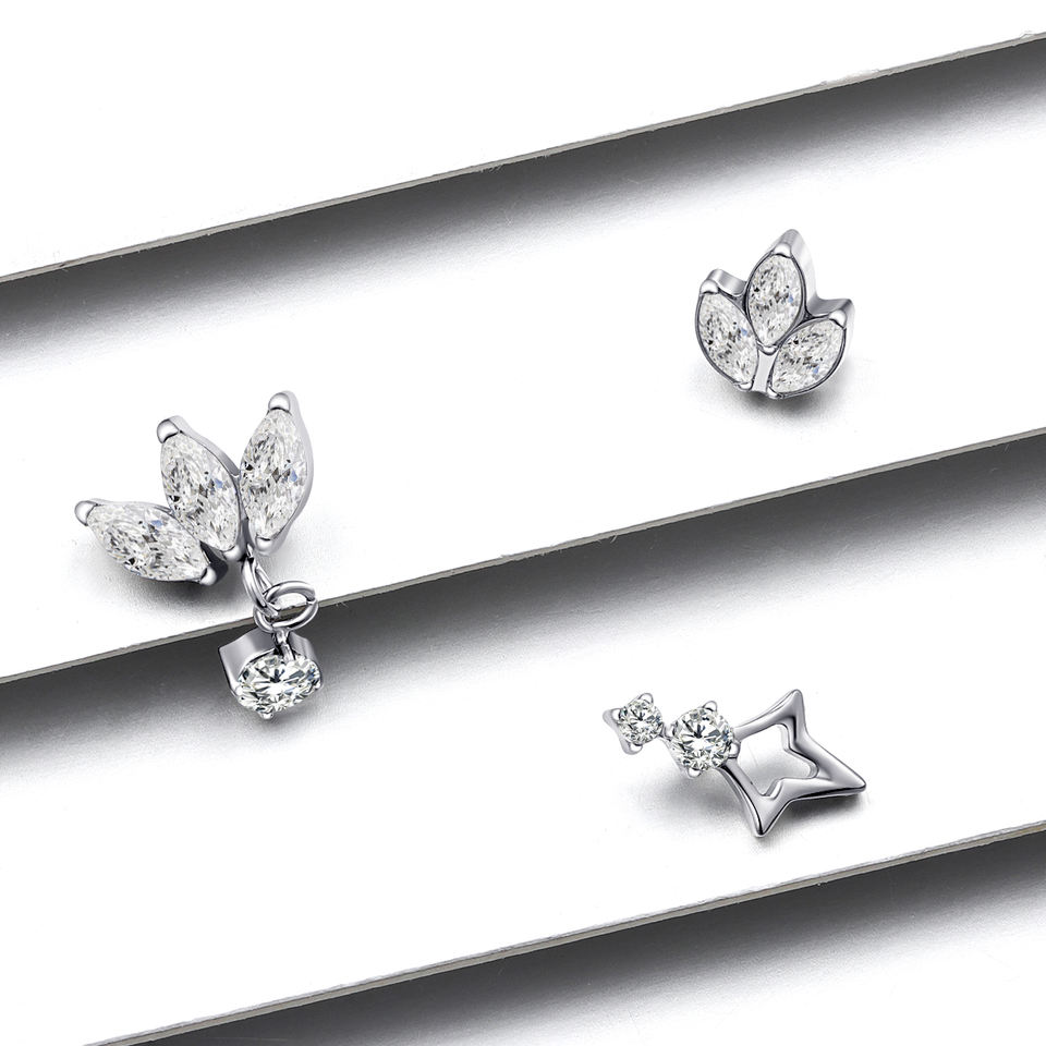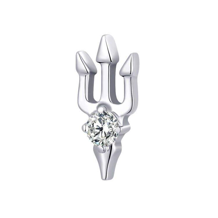 Piercing de Titanio ASTM F136 Eternal Metal con Zirconia Clásica, Tridente de Poseidón, para Oreja, Ombligo y Labret, con Extremos Roscados Internamente