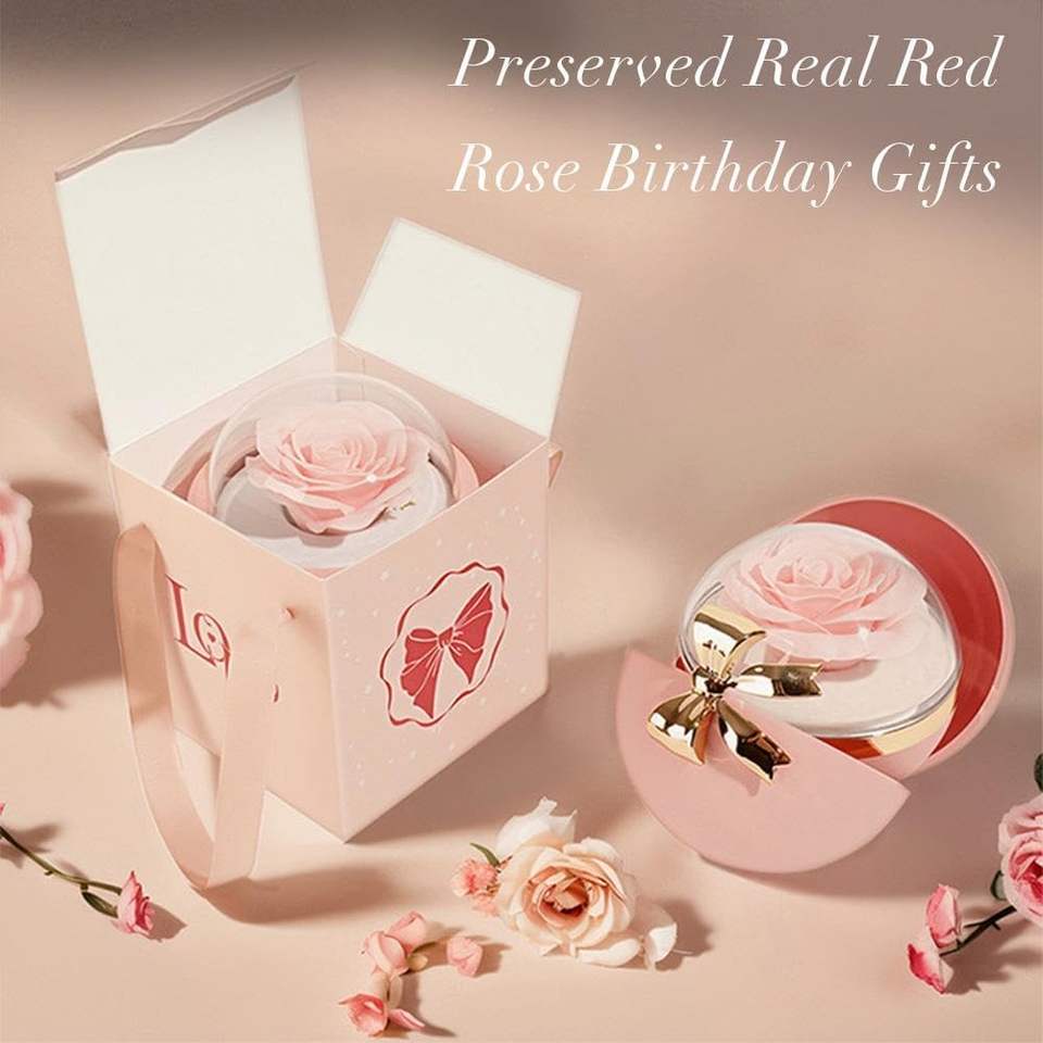 Caja de regalo con rosa roja eterna preservada, redonda, magnética, para guardar joyas, regalo romántico para el Día de San Valentín, para mujeres, madres, esposas