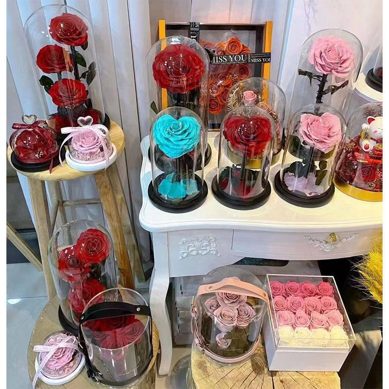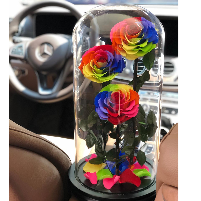 preserved rainbow rose in glass box-2024Número de Modelo