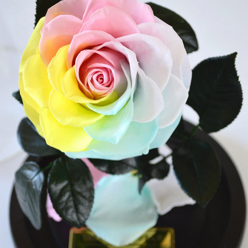 Rainbow Rose preservada en caja de vidrio