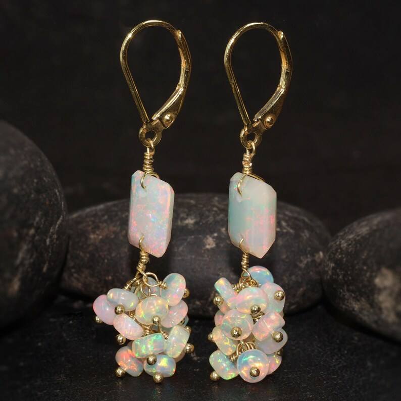 Palabra clave:Pendientes de cuentas de ópalo de fuego blanco multifuego etíope brillan con