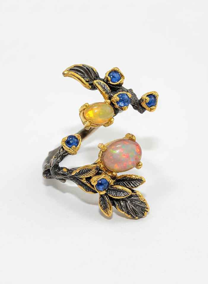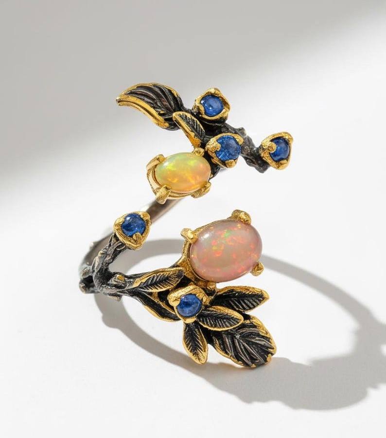 Keyword:Ethiopian Opal Leaf Design Ring Crafted For Elegant Nature Inspired