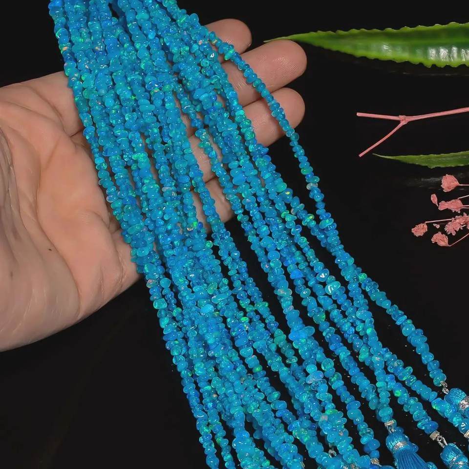 Material:Ethiopian Opal Neon Blue Gemstone Tumbled Smooth Beads