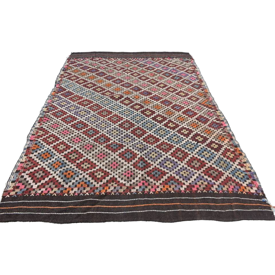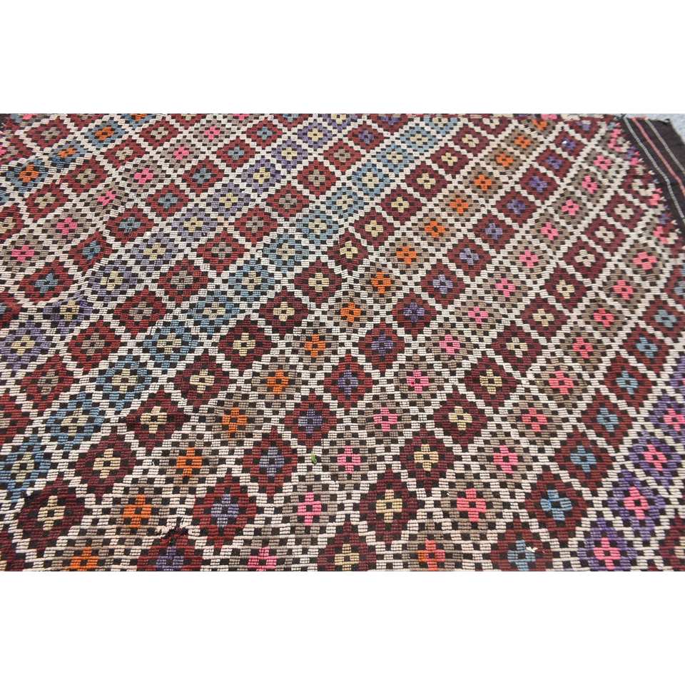 Alfombra étnica de lana marrón y rojo, 5,9x9,2 pies, hecha a mano, turca, área grande, rectángulo, patrón abstracto, respaldo de látex para pasillo, alfombra para habitación