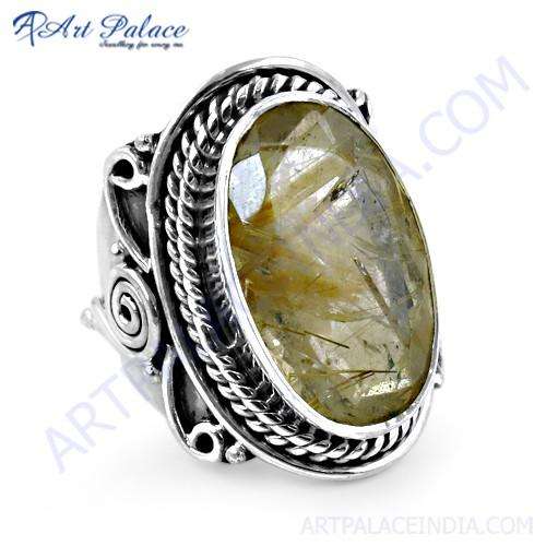 Anillo de plata con piedras preciosas rutil dorado de diseñador étnico