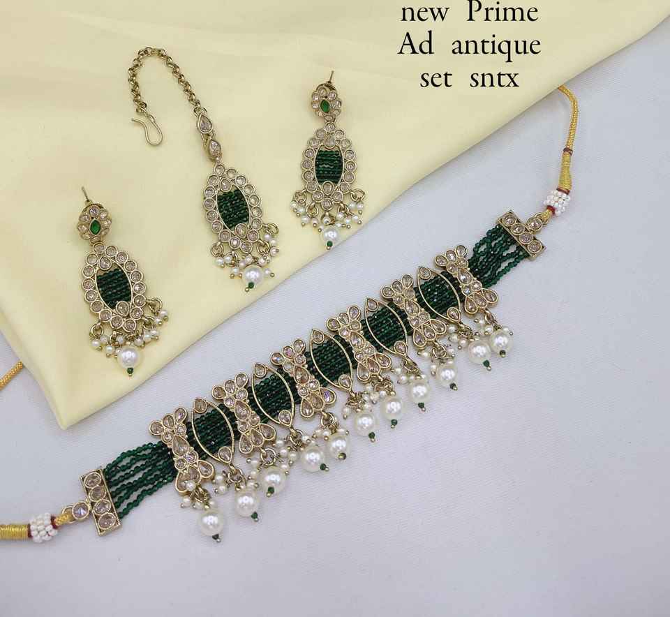 Conjunto de Collar y Aretes de Aleación Chapada en Oro Étnico con Cristales y Diamantes de Imitación, Maang Tikka para Mujer, Regalo para Aniversarios, Bodas y Fiestas
