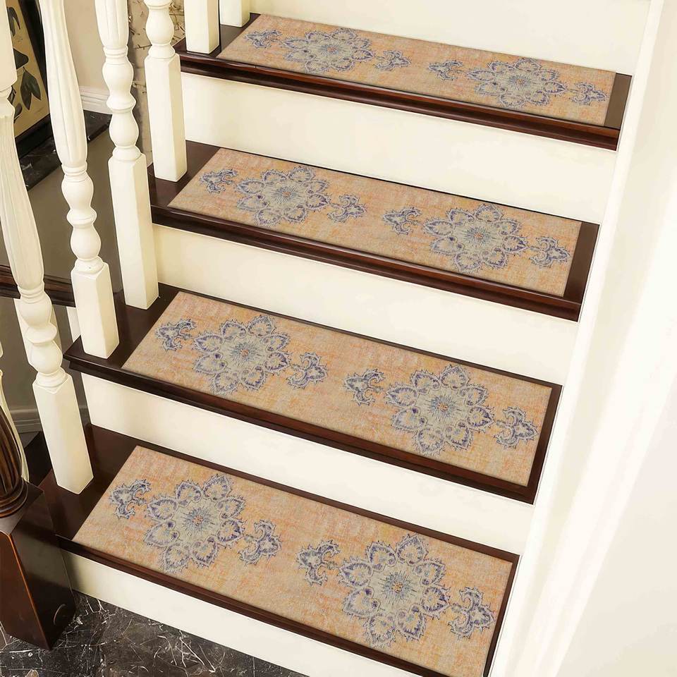 Alfombra con Estampado Étnico, Diseño Moderno Azul Desgastado Personalizado y Lavable, Alfombra de Entrada