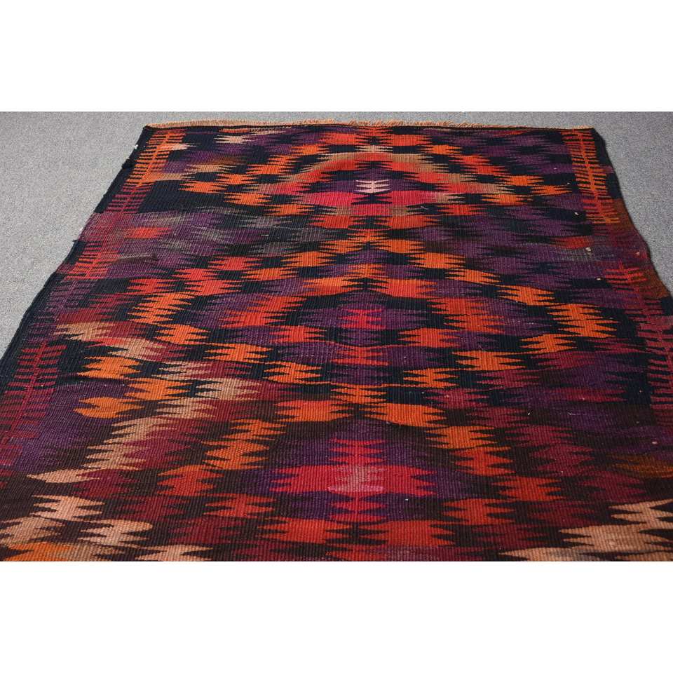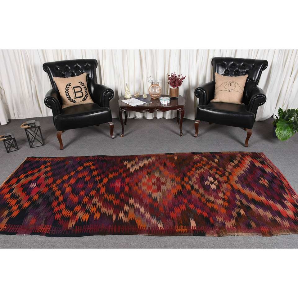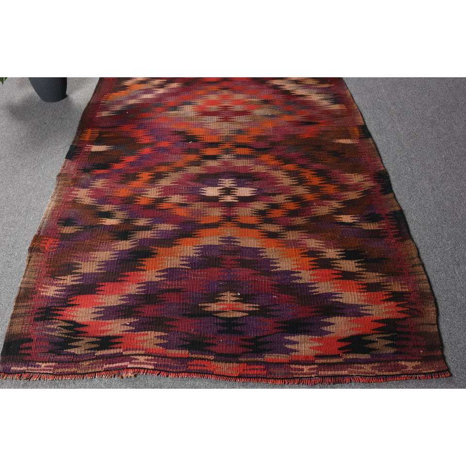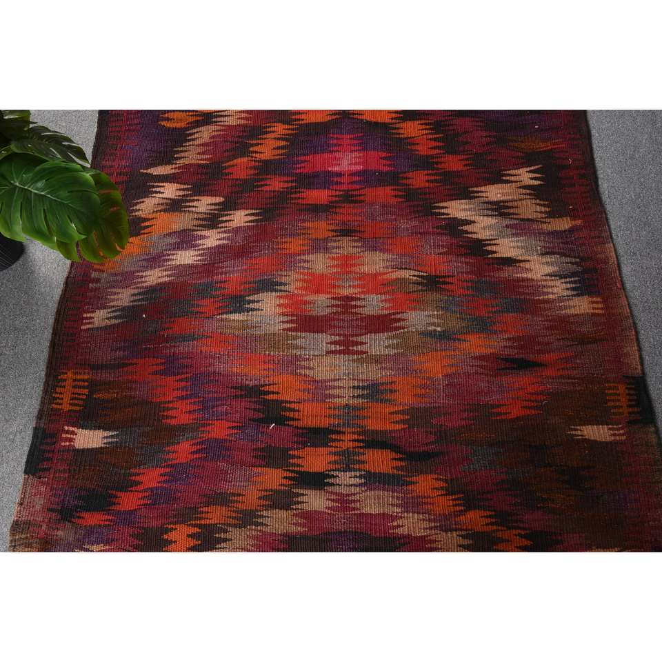 Alfombra Kilim Turca Étnica Roja 9x12, Hecha a Mano, Rectangular, de Lana, Ecológica, con Pelo Mediano, para Entrada