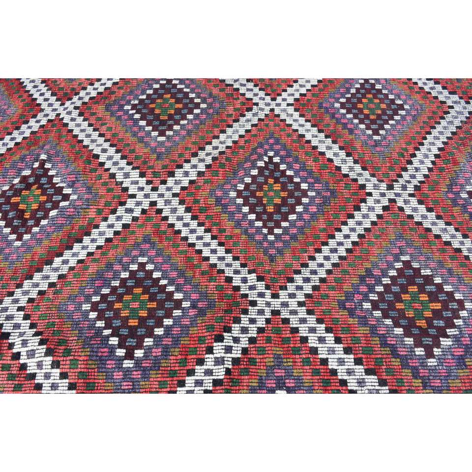 Alfombra étnica de lana roja y negra de 5,9x11 pies, alfombra turca hecha a mano, diseño de retazos a rayas para sala de estar, pasillo, látex de 10mm