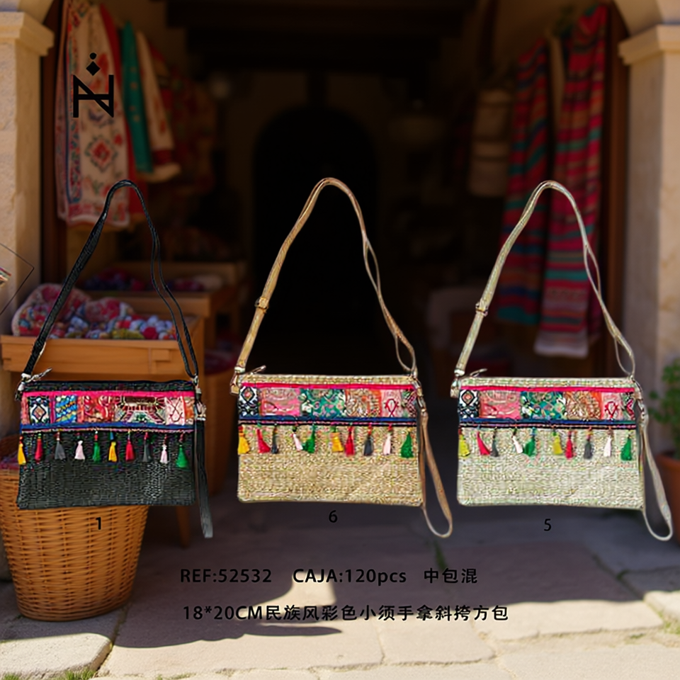 Bolso de Mano Pequeño Colorido de Estilo Étnico, Bolso Bandolera de 18x20cm