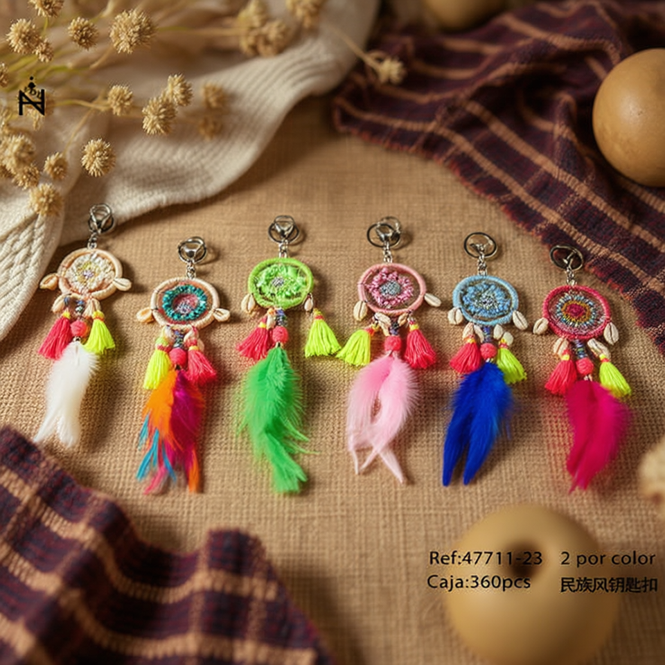 Llavero de estilo étnico, atrapasueños, colgante de plumas coloridas, accesorio decorativo