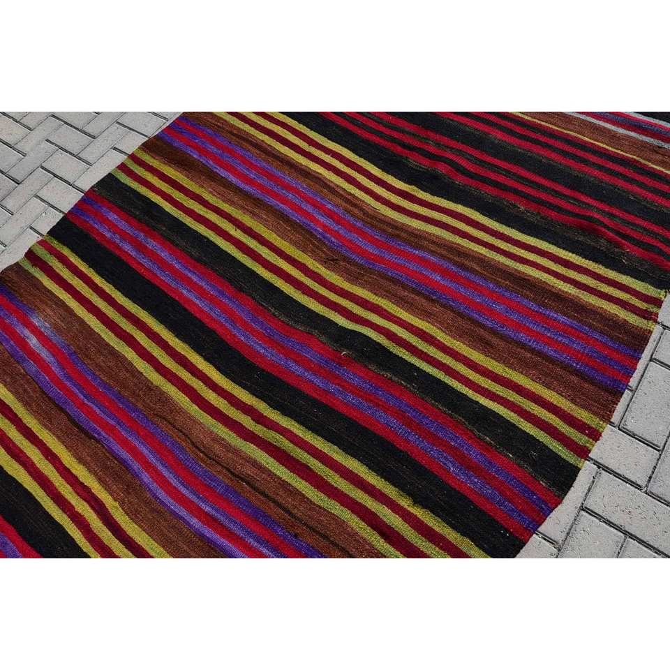 Alfombra turca Vintage étnica roja, negra, 5,2x11,8 pies, área grande, patrón de retazos con respaldo de látex de lana para decoración de pasillo o habitación