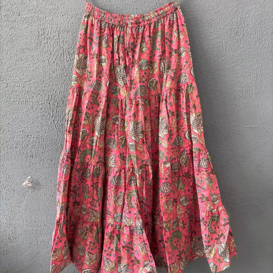 Vestido étnico de verano para mujer, falda larga de algodón estampada con bloque de mano con cintura elástica, estilo informal sostenible transpirable
