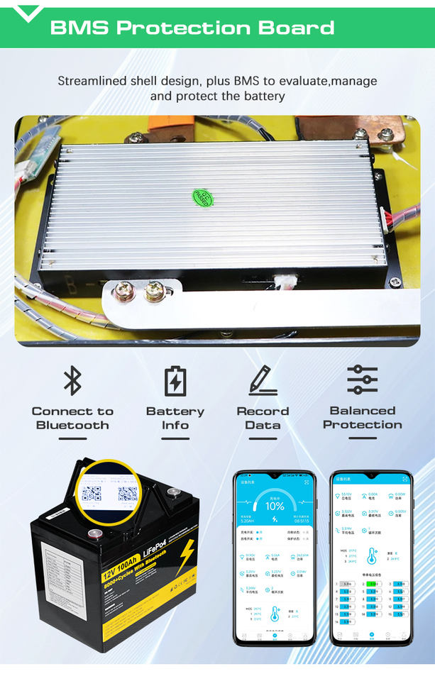 Batería de Litio LiFePo4 de Ciclo Profundo de 12v 100ah 200ah en Existencia en la UE, Batería de Iones de Litio de Alta Eficiencia para Almacenamiento de Energía en Vehículos Recreativos, Amplia Aplicación