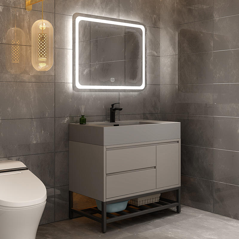 Kamalu-Mueble de lavabo de cerámica integrado de 60 cm con dos cajones resistentes al agua para tocador de baño