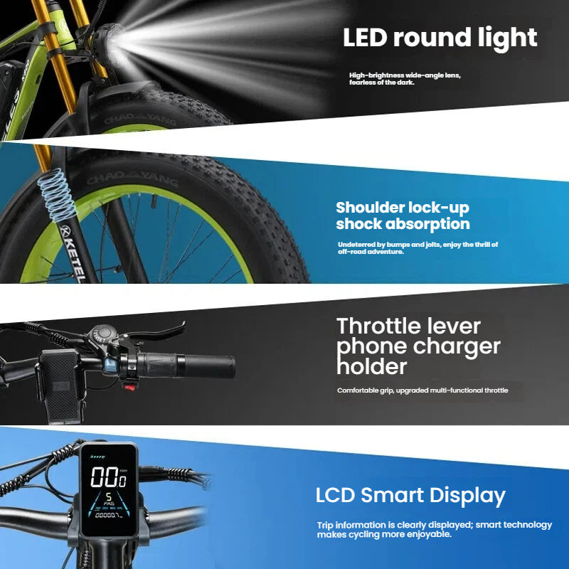 Bicicleta Eléctrica de Montaña Europea de 26 Pulgadas con Neumáticos Gruesos 4.0, Cuadro de Aluminio Softtail, 21 Velocidades, Frenos de Disco, Motor sin Escobillas de Alta Velocidad