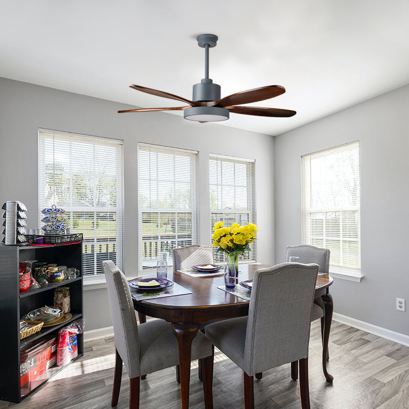 Europa 52 pulgadas 60 pulgadas hogar decorativo Control remoto madera 5 aspas moderno DC Motor ventilador de techo con luz
