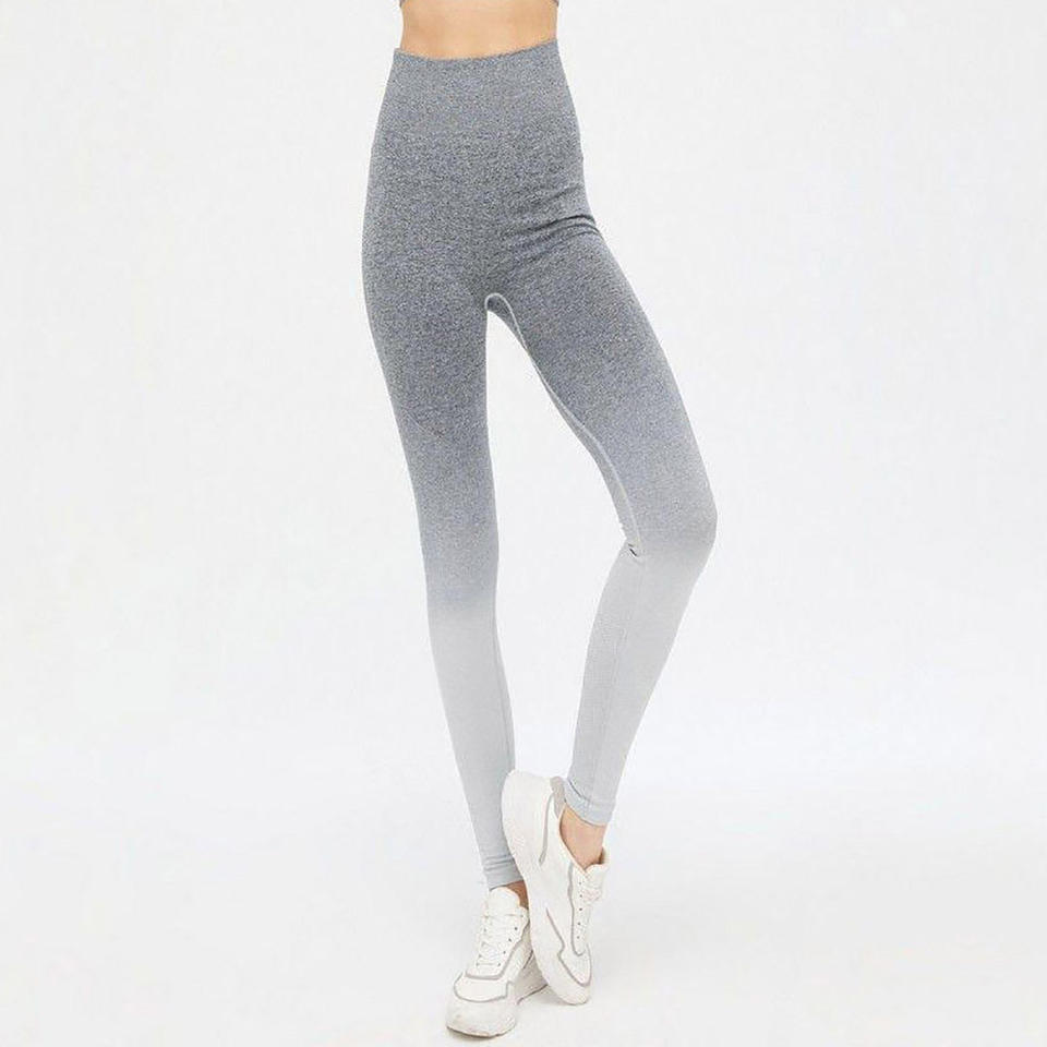 Pantalones de Yoga de cintura alta transfronterizos europeos y americanos para mujer, mallas ajustadas con degradado de caramelo de punto sin costuras
