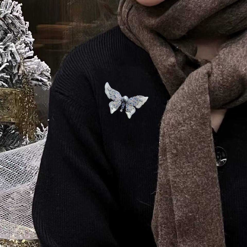 Broche de Mariposa Verde con Microincrustaciones de Circonio, Estilo Europeo Americano, Flor de Perlas para el Pecho, Chapado en Oro sobre Cobre