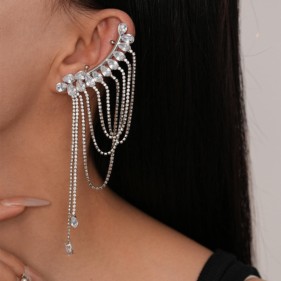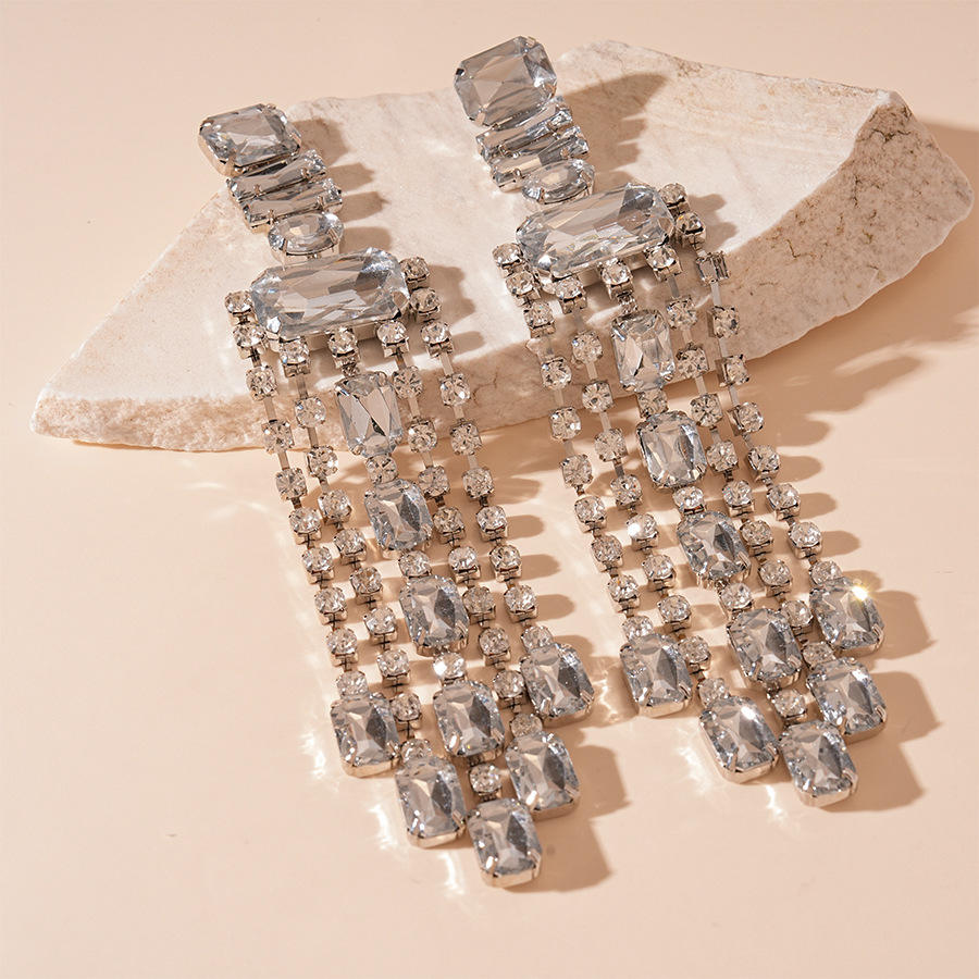 Pendientes exagerados de gama alta europeos americanos, pendientes de borla geométrica con flores incrustadas de diamantes, moda transfronteriza
