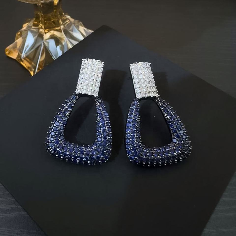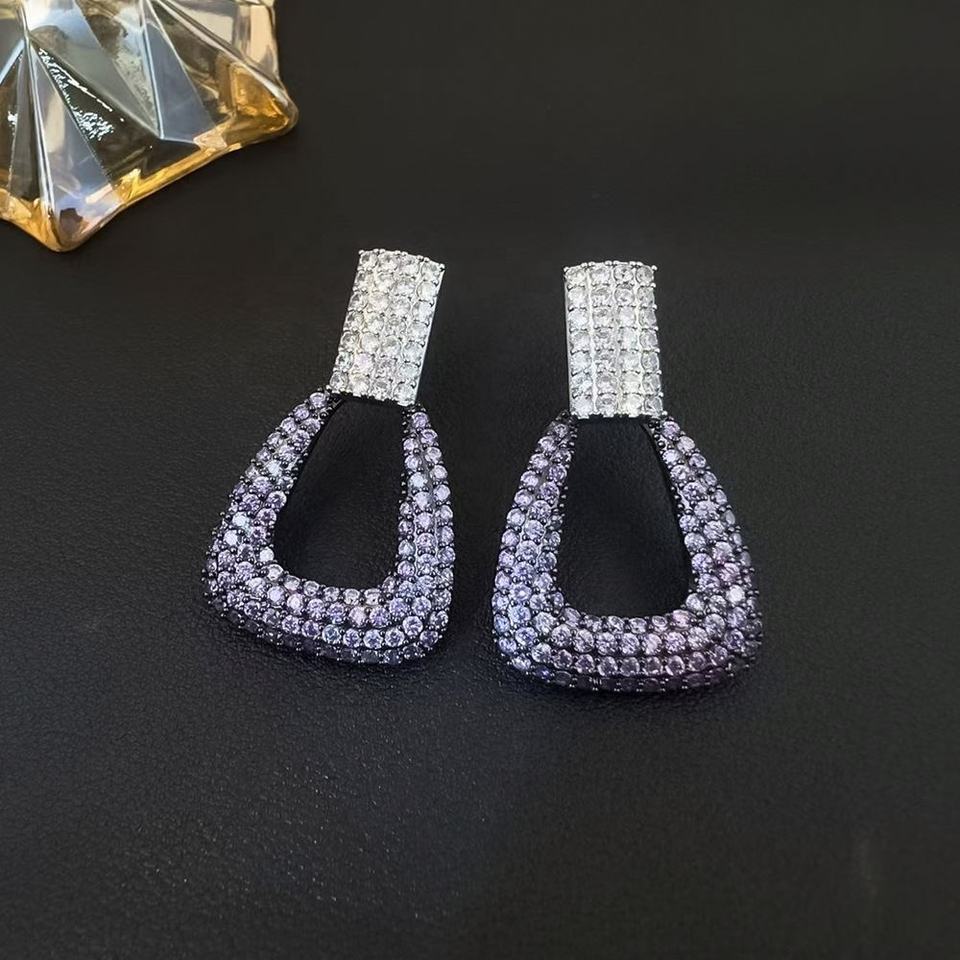 Pendientes Largos Cuadrados de Cobre con Circonita, Estilo Europeo Americano, Lujo Ligero, Geométricos, Vintage, Exagerados, Elegantes, con Personalidad
